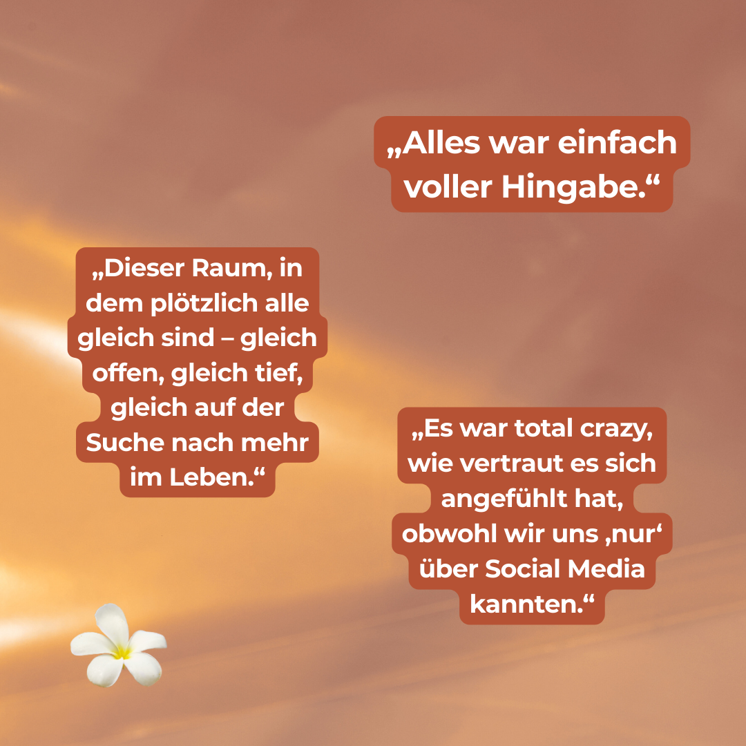 In einem geschützten Raum – in Verbindung mit dir selbst und anderen – darfst du wieder spüren, wie leicht Begegnung sein kann. Wie nährend echte Verbindung ist. Wie viel Freude im puren Sein liegt.